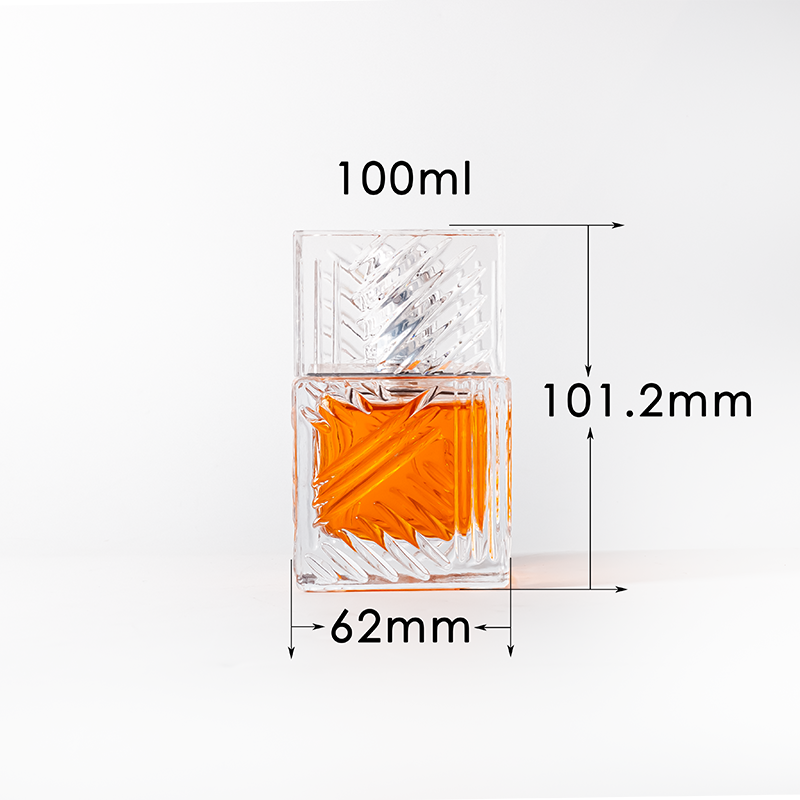 The crystalline square perfume glass bottle is a study in minimalist design. Its clean lines and geometric shape offer a refreshing take on traditional perfume packaging. The bottle’s transparency allows the rich orange hue of the perfume to take center stage, while the etched patterns on the glass add depth and texture. This bottle is not just a container for fragrance; it’s a piece of art that reflects light and captures attention.